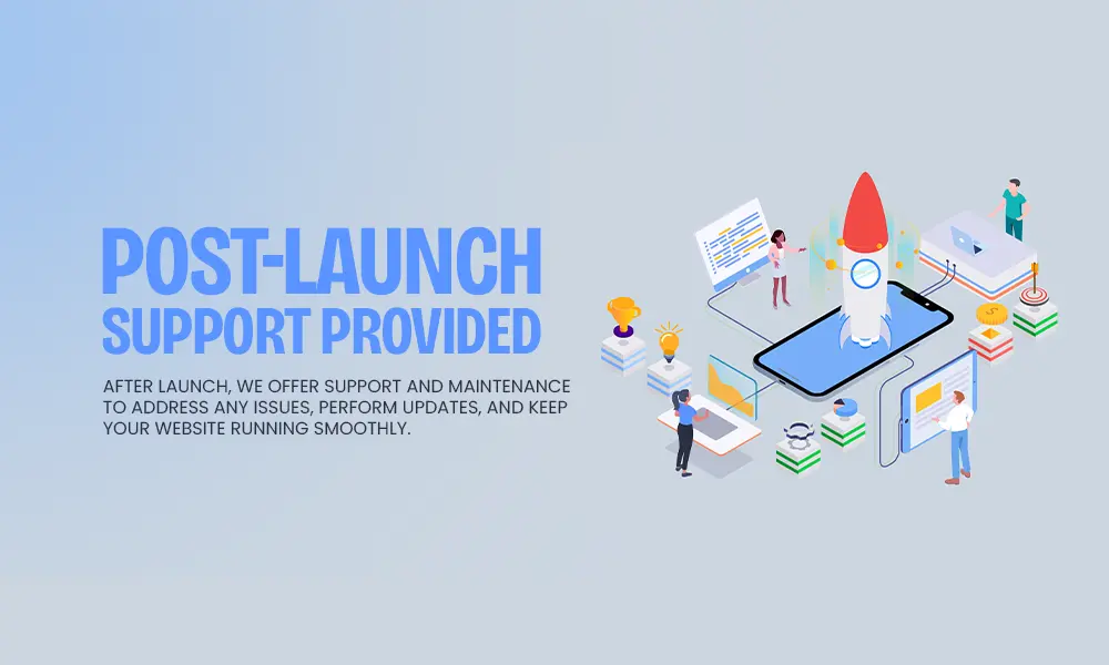 بعد الإطلاق، نقدم الدعم والصيانة لمعالجة أي مشكلات وإجراء التحديثات والحفاظ على تشغيل موقعك الإلكتروني بسلاسة.